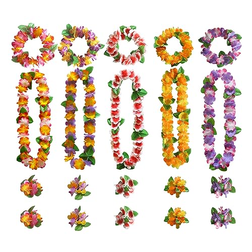 20 st hawaiiansk krans set, hawaiianska blommor halsband pannband armband, tropisk fest set, sommar strand semester pool fest dekoration tillbehör