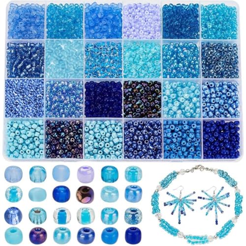 PH PandaHall 3600 st 4 mm blå glas klipppärlor flytande pärla mini runda glas pärlor 24 färg 6/0 pärlor och sortiment ponnypärlor för armband, smycken sommar strand dekor