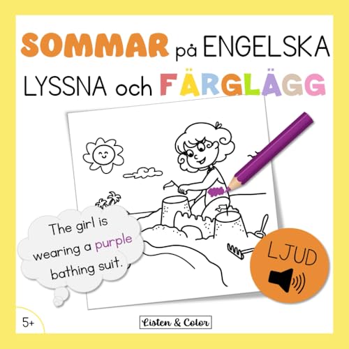 Sommar på Engelska: Lyssna och Färglägg: Tvåspråkig Aktivitetsbok med Ljud för Barn från 5 år | Ordförråd och Lyssningsförståelse