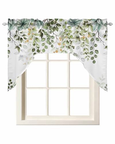 Salvia gröna eukalyptusblad gungor för köksfönster, vår sommar botaniska små swag gardiner draperier för sovrum badrum över handfat stång ficka fönster behandling dekor kappor, 137 x 80 cm