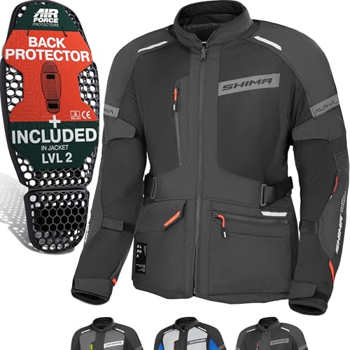 SHIMA ALPHA motorcykeljackor för män AIRFORCE ryggskydd rustning ridning motorcykeljacka sommar vinter cyklister kostym vattentät lätt pansrade motorcyklar (herr, svart, 3XL)
