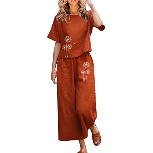 Elegant 2-delat set för dam sommar lös elegant skjorta casual byxor matchande plus storlek träningsoveraller gym bekväm hem kurvig strand andningsbar tvådelat set, Apelsin, M