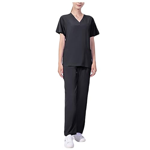 Legou Dam sommar arbetsuniform kortärmad V-ringad skrubb skjorta elastiska joggingbyxor snabbtorkande kostym läkare sjuksköterska skönhet center husdjur groomer arbete bär kläder tvådelad skrubb set,