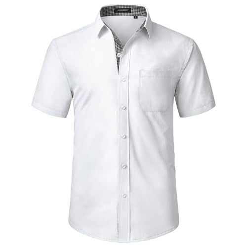 HISDERN Kortärmad skjorta herr sommar casual skjortor enfärgad original skjorta med ficka vanlig passform, Vitt och blått, L