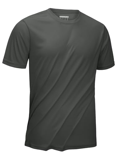 KEFITEVD Snabbtorkande stretchig t-shirt för män sommar tunn sport t-shirt ledig lätt kortärmad toppar, Mörkgrått, L