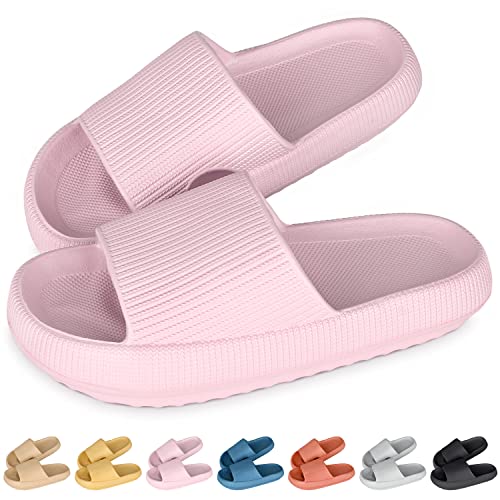 DOUCO Cozislides Tofflor för kvinnor och män, Cloudyzz-tofflor mysiga molntofflor, badtofflor, gummi, halkfria, öppen tåseparator, perfekt för sommar och trädgård, badtofflor