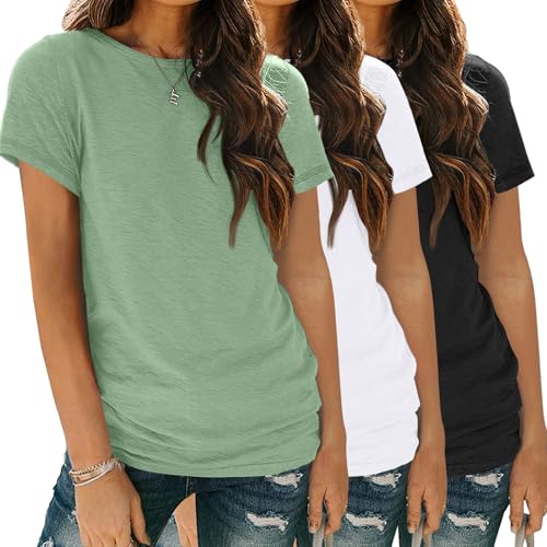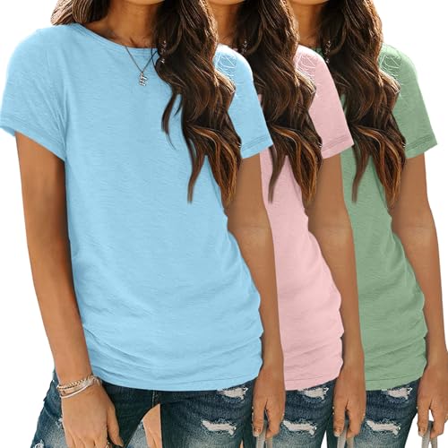 SUNBS Dam 3-pack t-shirts basic kortärmad t-shirts rund hals mode toppar lös passform lätt vardaglig sommarkläder 2024, 3 pack: Blågröna, XXL