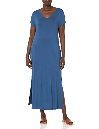 INK+IVY Kortärmad t-shirt långa fickor, swing maxiklänningar stretch rayon spandex sommarkläder för kvinnor, BLÅ, XXL