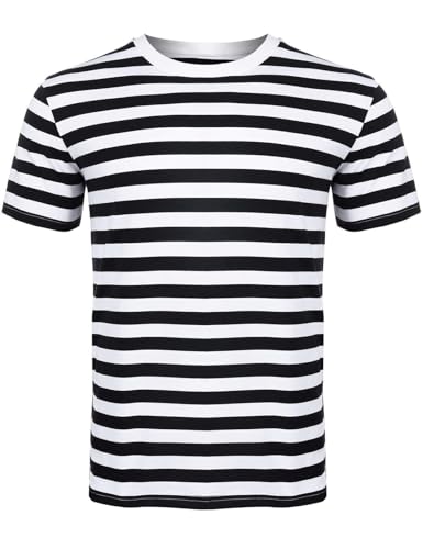 ANZEE DISCOVER THE NEW YOU Herr dam randig t-shirt unisex rund hals kortärmad ränder t-shirt bomullstopp rund hals barn vardaglig rund hals sommarkläder, Vit/svart, M