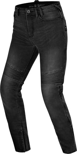 SHIMA Zenith Motorcykeljeans för män GFLEXX Homologerad smal passform textil jeans urban byxor ventilerande knäskydd elastiska sommarkläder (herr, svart, 34/34)