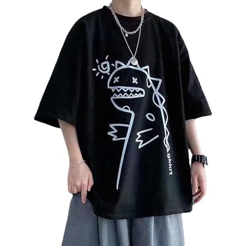 Harajuku streetwear herr t-shirt grunge överdimensionerad baggy t-shirt Y2K estetisk dinosaurie tryck goth emo sommarkläder, Svart, XXL