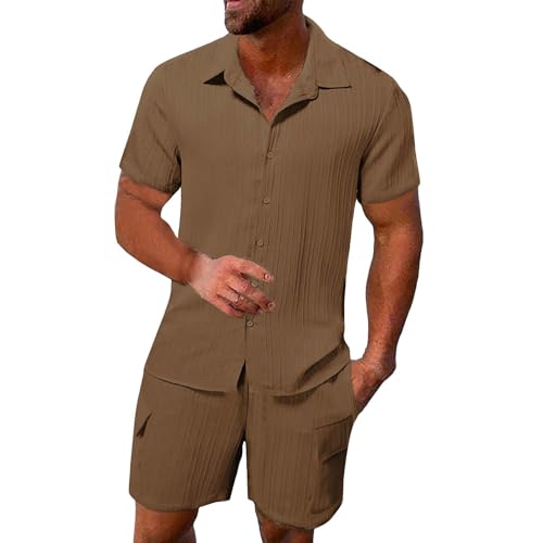 Sommarkläder för män 2-delat set shorts och t-shirts bomull linne kostym herr strandkläder set andningsbar semester outfit medord atletisk set sommarsemester kläder bekväma bröllopsdräkter för