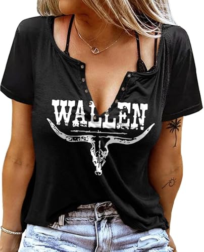 Sxkayxr V-hals T-shirts för kvinnor 2025 landskonsert cowgirlkläder för kvinnor söta sommartoppar grafiska t-shirts t-shirts, A Wallen Svart, L