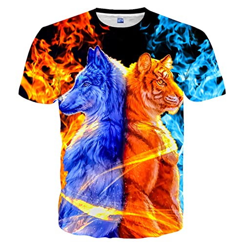 SYAIMN unisex 3D-tryck skjortor ledig kortärmad grafisk t-shirt roliga sommartoppar för män kvinnor, Djur varg, L