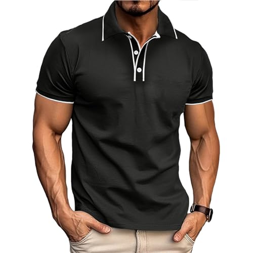 Volemo Pikétröjor för män, kortärmade pikétröjor, bomull, t-shirt, sommartoppar, normal passform, M-3XL, Svart, L