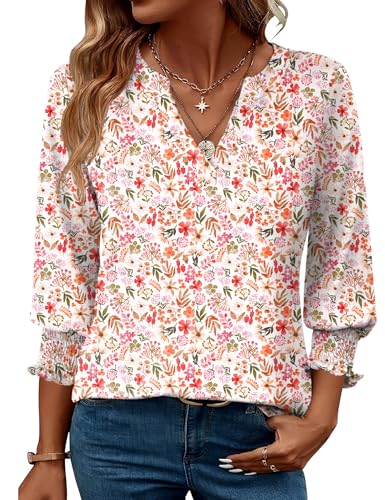 Rapbin damblus 3/4 ärm, lång V-ringad tunika, sommartoppar, lös skjorta, elegant ledig topp 2025, L