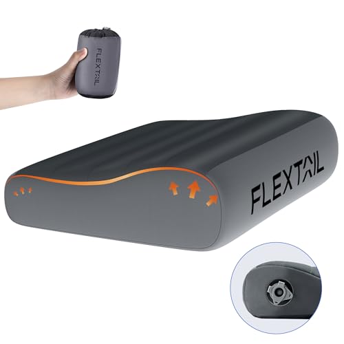 FLEXTAILGEAR Nackkontur uppblåsbar campingkudde – ergonomisk resekudde med tvättbart skydd – separat TPU-blåsa – perfekt för läger, vandring, flygplan – bekvämt sömnhjälpmedel