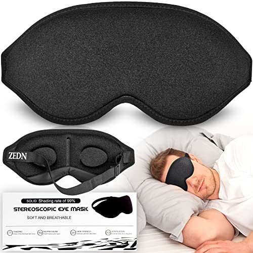Ögonmask, sömnmask, 3D-konturerad kopp ögonmask med justerbar rem, unisex, andningsbar ögonmask för sömn, mjuk och lätt