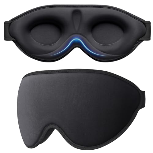 Umisleep Sömnmask, 3D-konturerad kup-ögonmask och minnesskum sovmask med justerbar rem för kvinnor och män, allt-ljus sovmask för resor, tupplur, yoga, svart