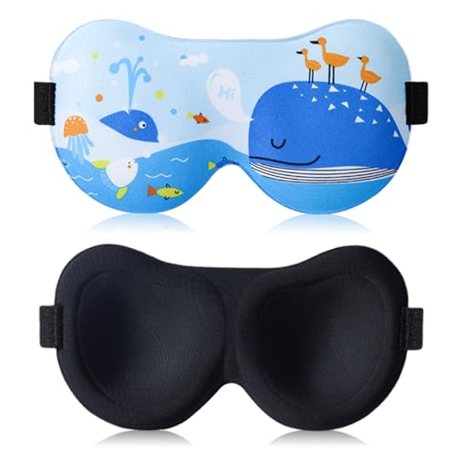 Gsrhzd Nattmask för barn, söt tecknad 3D-sömnmask, sovande ögonskydd med justerbar rem, ögonpannband, blå
