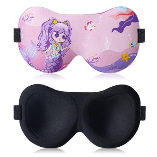 Gsrhzd Nattmask för barn, söt tecknad 3D-sömnmask, sovande ögonskydd med justerbar rem, ögonpannband, lila