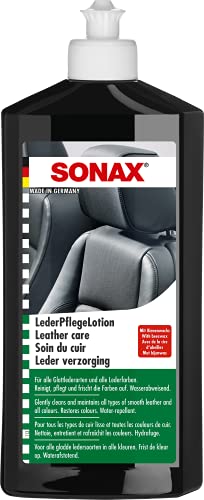 SONAX Lädervård (500 ml) - Rengör försiktigt och upprätthåller alla typer av slätt läder. Vattenavvisande. Återställer färger. | Artikelnr 02912000-810