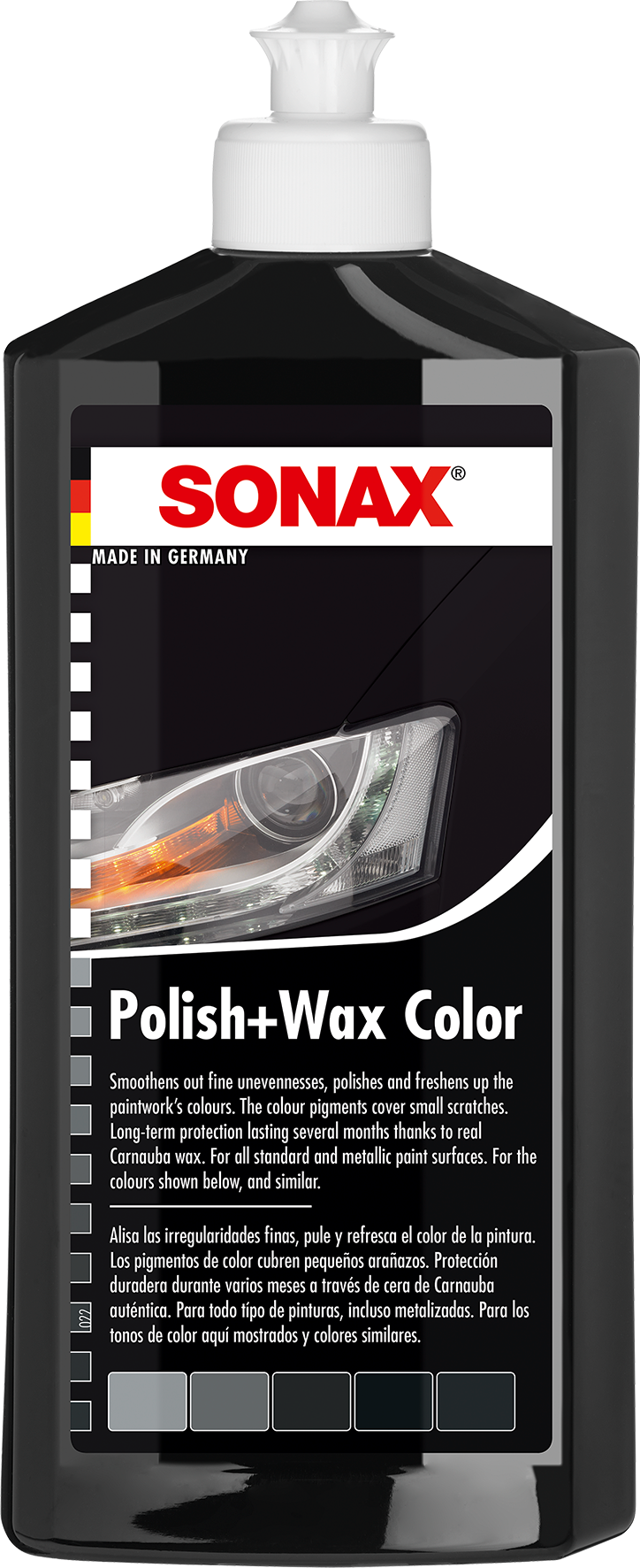 SONAX Polish+Wax Color NanoPro svart (500 ml) medelstark polering med färgpigment och vaxkomponenter | N. 02961000-820