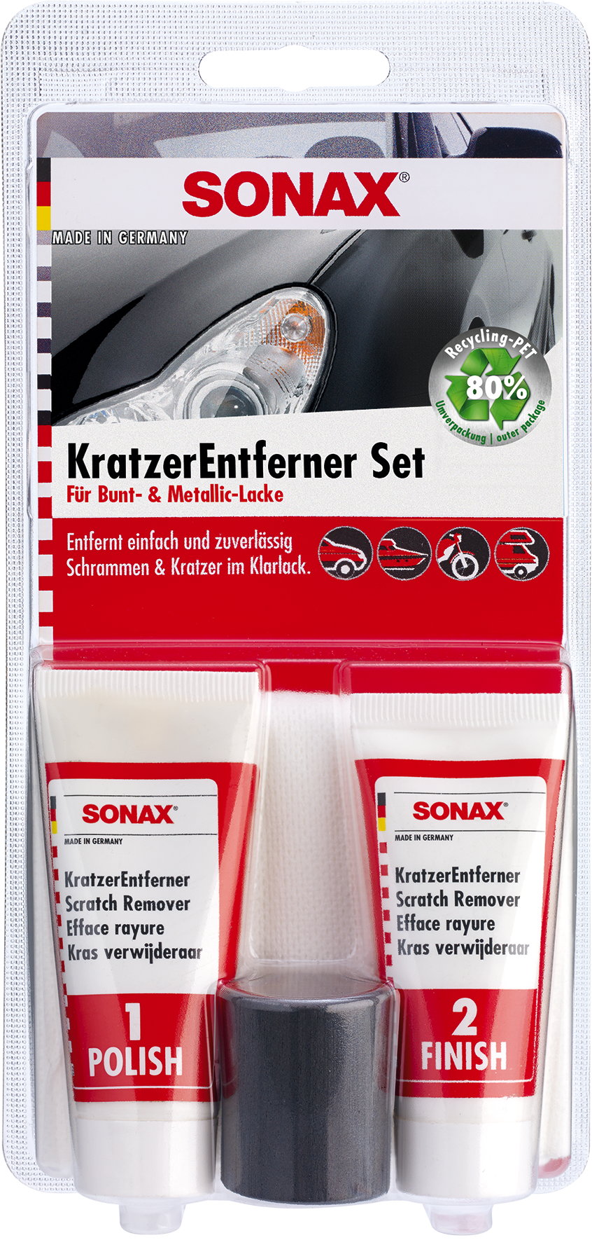 detailmate SONAX Handpoleringsset – SONAX Polish + vaxfärg silver/grå 500 ml + handpoleringssvamp, puck i kompositbyggnad, hård Ø 90/50 mm, Edgeless superfluffig mikrofiberpolerduk 550 GSM