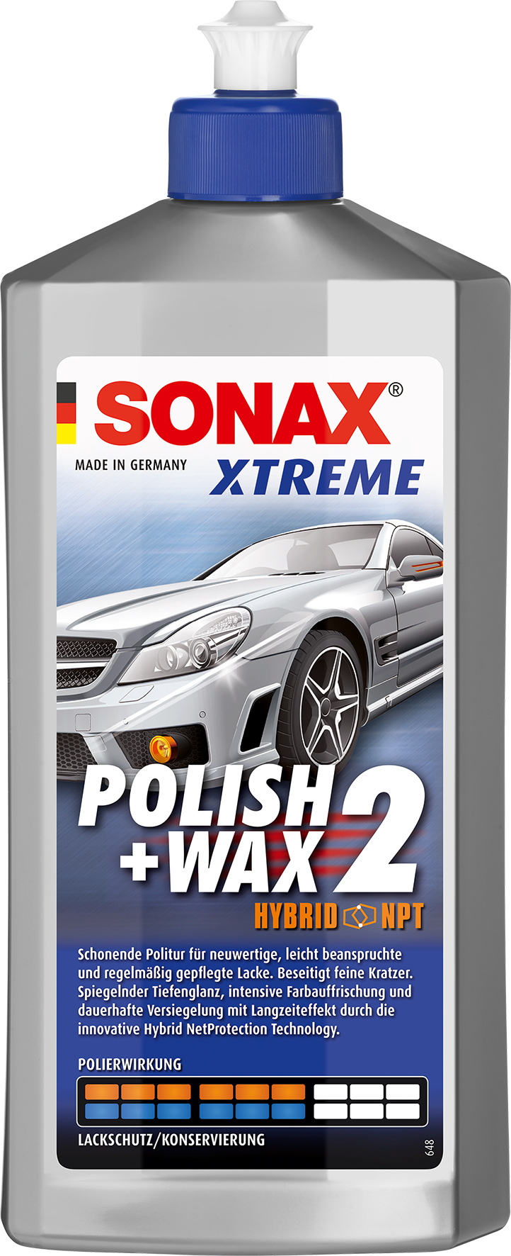 SONAX XTREME Polish+Wax 2 Hybrid NPT (500 ml) – För nästan nya, lätt slitna och regelbundet underhållna färgytor. | Artikel-nr. 02072000-810
