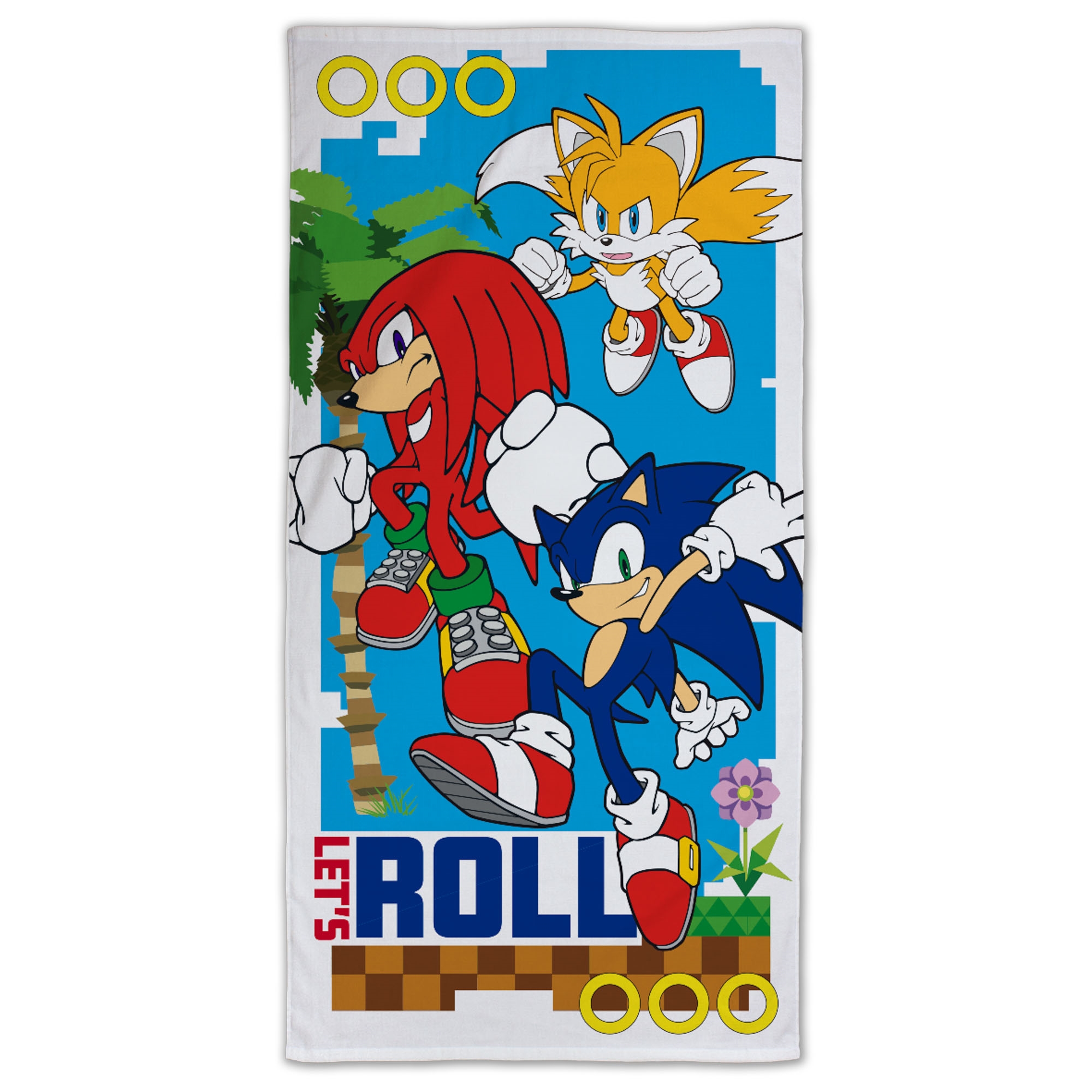 Character World Official Sonic the Hedgehog barnhandduk | supermjuk känsla, studsdesign | Perfekt hemmet, badet, stranden och poolen | En storlek 70 cm x 140 cm | 100% bomull