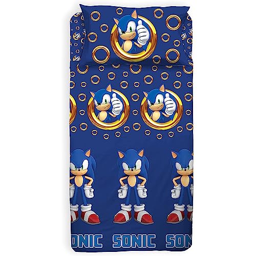 Sonic sengetøy 140x200 cm - Vendbart sengesett med Sonic The Hedgehog - 100% mykt bomulls sengetøy