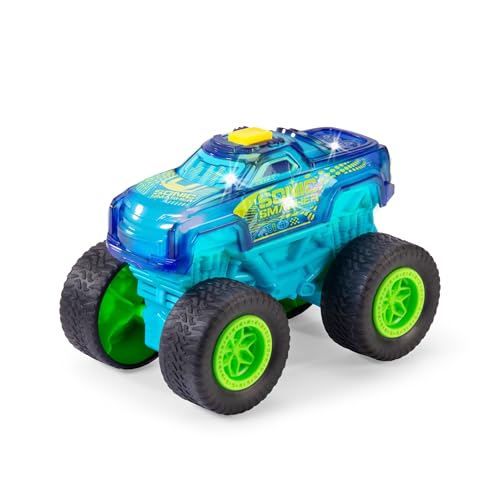 Dickie Toys – Sonic Smasher monstertruck med ljusbyte och musik (17 cm) – upphöjd hytt från 3 år med reträtt och gummidäck, leksaksbil för barn, inklusive batterier