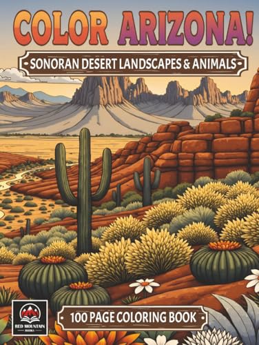 Color Arizona! 100 Page Sonoran Desert Landscapes and Animals Hardcover Coloring Book: Cacti, Mountains, Lakes, Birds, Flowers, and Reptiles and Mammals of the Desert Southwest