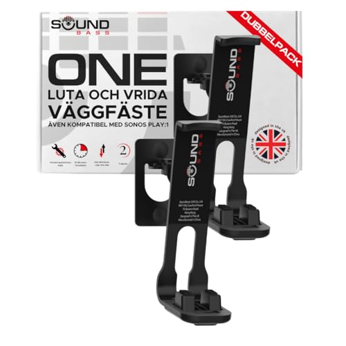 ONE, ONE Gen 2, ONE SL & Play:1 väggmonteringsfäste, svart, kompatibel med Sonos ONE, ONE Gen 2, ONE SL & PLAY1-högtalare