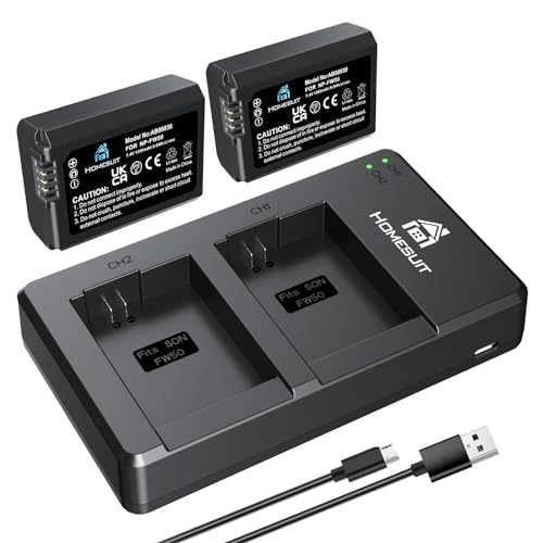 Homesuit NP-FW50-batterier (2-pack) och USB Dual Charger Kit kompatibel med Sony A6000-batteri, A6500, A6300, A7, A7II, A7RII, A7SII, A7S, A7S2, A7R, A7R2, A55, A5100, RX10 tillbehör