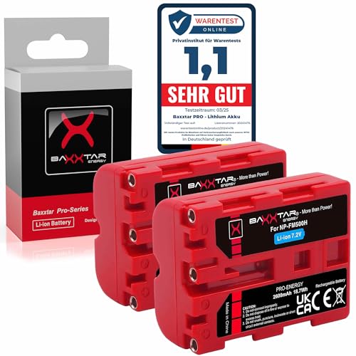 Baxxtar PRO batteri NP-FM500H 2x (äkta 2400mAh UL-certifikat) med infochip – kompatibel med Sony Alpha A57 A58 A65 V A68 A77 A77V A99 A99 II ...