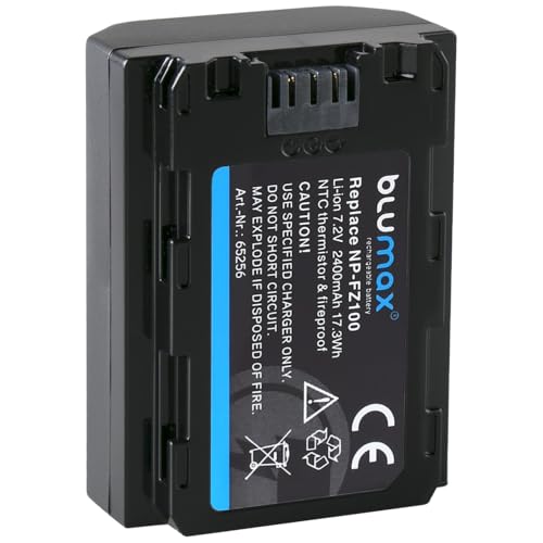 Blumax batteri kompatibelt med Sony NP-FZ100 | – 2 400 mAh NTC-sensor och V1-hölje – | för Alpha 9 III A9/A7C A7 III – IV // A1 6700 FX30 ZV-E1