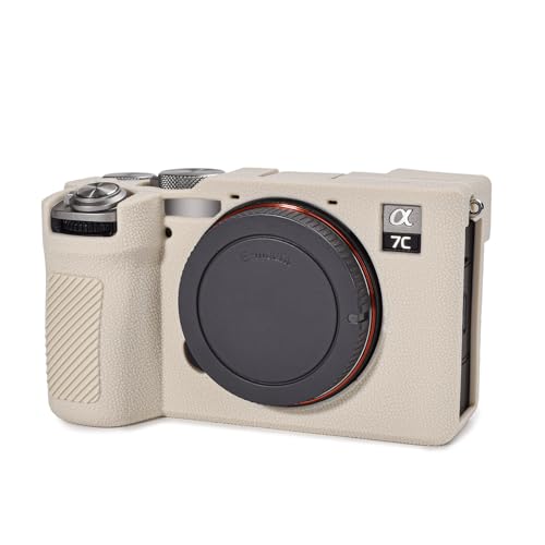 Rieibi Alpha 7C II kameraväska, halkfri textur yta kameraskydd för Sony A7C M2/Sony A7C II/A7C 2 reptåligt mjukt silikonskyddsfodral lätt avtagbart skyddsskal, Krämig vit, kamerafodral