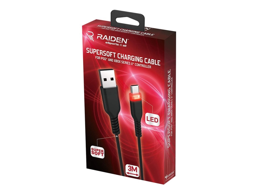 Raiden - Usb-Kabel - Usb (Hane) Till 24 Pin Usb-C (Hane) Röd Led-Bakgrundsbelysning - 3 M - För Sony Dualsense