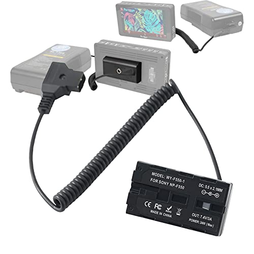 DF DIGITALFOTO NP F550 Dummy-Batteri till D-Tap Lindad Strömkabel för Sony NP F570 NP F970 Atomos Shinobi/Ninja V-Skärm, Fullständig Avkodning, Svart