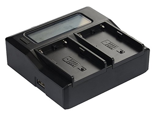 Trade-Shop V-Mount Li-Ion batteri 2-kanals laddare inkl. laddningskabel för Sony MSW-970P PXW-X500 PDW-HD1200 PDW-HD1500 PDW-F1600 PDW-HR1 BC-L70 Nikon D7100