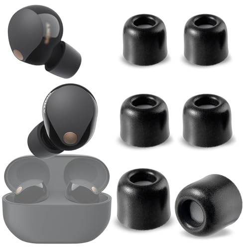 Tips med minnesskum för Sony WF-1000XM5 med dammnät, halkfria ersättningsöronspetsar för Sony True trådlösa hörlurar, passar i laddningsfodralet, perfekt brusreducering, 3 par (stor, svart)