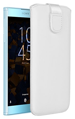 mumbi äkta läderfodral kompatibel med Sony Xperia XA2 skal läder väska Case Wallet, vit