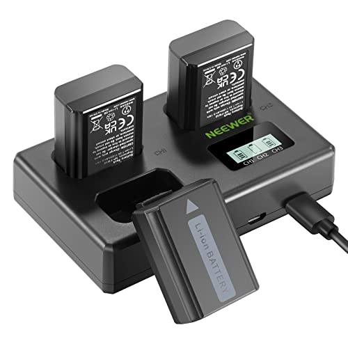 NEEWER NP-FW50 set med 3 reservbatterier och laddare 1100 mAh NP-FW50 och USB-laddare med trippelfack kompatibel med Sony ZV-E10 A7 A7R A7RII A7II A7SII A7S A7RII A6300 A6400 A6500 RX10