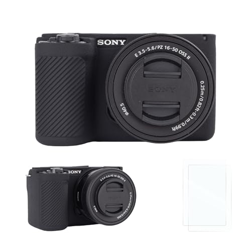 Rieibi Silikonskyddsfodral för Sony Alpha ZV-E10 II kamerafodral med 2 st skärmskydd, lätt ZV-E10II fodral förbättrad greppkänsla för Sony ZV-E10 II kamerafodral, Svart, Kamerafodral