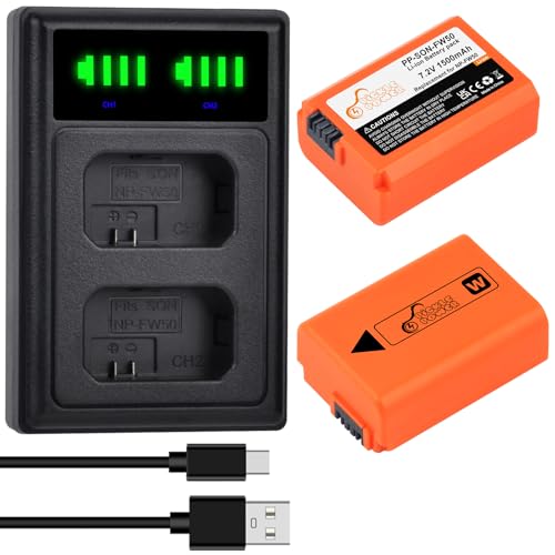 JYJZPB NP-FW50 Ersättningsbatteri och Dual Channel-laddare kompatibel för Sony Alpha A6000 A6400 A6500 A6300 A6100 ZV-E10 A7 A7II A7RII A7SII A7S A7S2 A7R A7R2 A5100