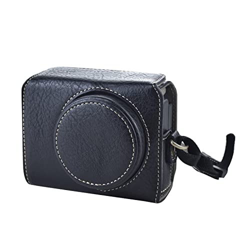 Rieibi ZV1 fodral - vintage PU-läder kamerafodral för Sony ZV1 ZV-1 DSLR kamera - skyddsfodral med rem, svart, skönhetsfodral