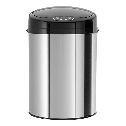 Echtwerk kontors-/badrums-/kosmetikaskräp, papperskorg med sensor, elektrisk sopbehållare, infraröd rörelsesensor, touchfri, rostfritt stål, lock, svart, kapacitet 9 liter, INOX
