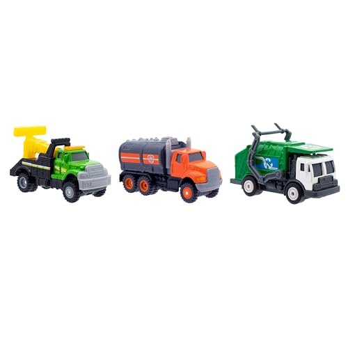Mighty Fleet Diecast 3-pack, bärgningsbil, sopbil och tankfartyg, hållbar 7,6 cm formgjutningsfordon för barn i åldrarna 3+