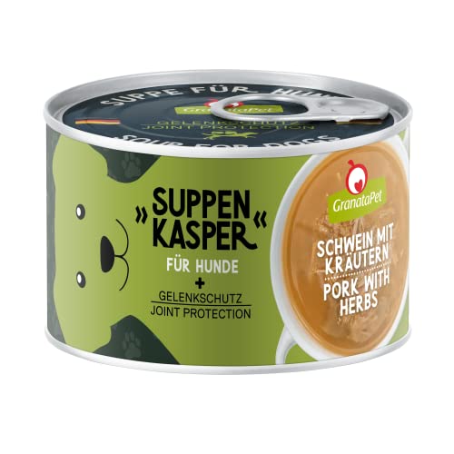 GranataPet Soppkopp gris med örter, soppa för glada hundar, mellanmål med grönläppmussla & mineraler, hundmat utan spannmål för en art-lämplig kost, 140 g